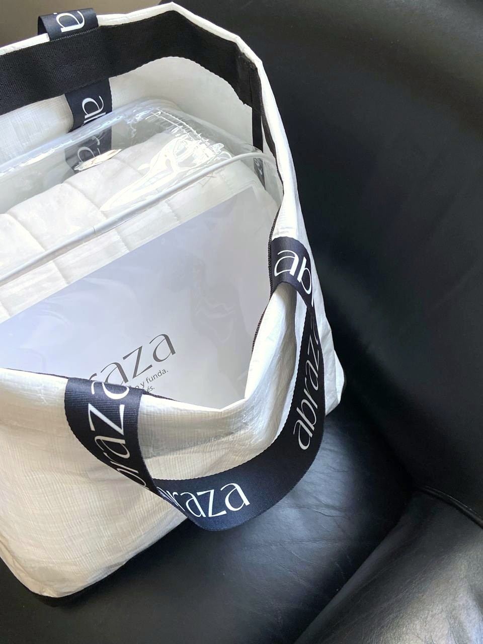 El bolso de viaje está diseñado para guardar o transportar tu abraza de una manera práctica. Su tela es impermeable y es de gran tamaño, mide 40x35x20 cm. Además, es reforzado, lo que le permite soportar más de 15 kg. Tiene tira larga y corta.